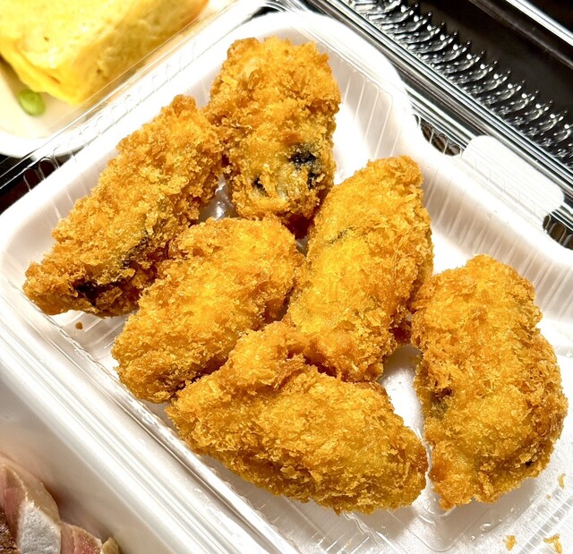 カキフライ4個、から揚げ4個、牛肉コロッケを買ってアパホテル栄に期間(^^)