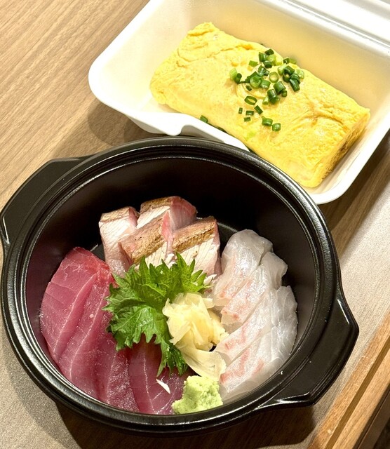 注文はマグロ、ブリ、鯛のお刺身三種(各500円)と【京風だし巻き卵】をテイクアウトで注文(^^)