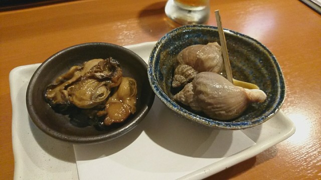 そしてカウンターに案内されて、刺し盛、がぜうに、ばくろうを注文しました。