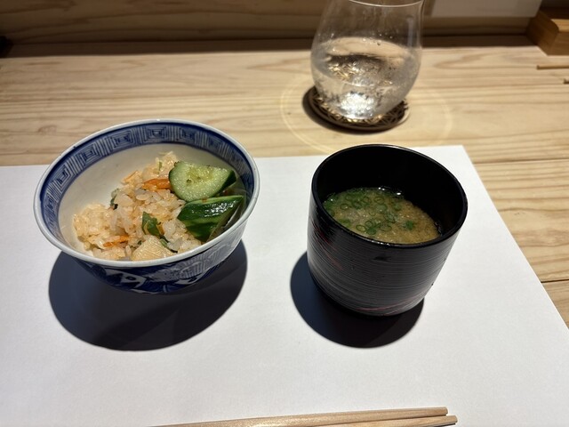 少し隠れた様な場所にお店がありました。清潔で明るい店内がとても印象的でした。入って直ぐ左側に小上がりがあり、カウター8席のお店でした。入り口近くのカウターに座りましたが、人の出入りがあるので奥のカウター席を希望しましたが、既に奥は予約済みと言われ断念。隣りにご夫人2人が後から入店され、着席前に小上がりの写真をパチパチ撮影。常連さんなのでしょうか?出て来たお料理をパチパチ撮影、携帯をいじりながら談笑。時折り、少し大きめなお声で、右隣に居たカップルはやや迷惑顔。