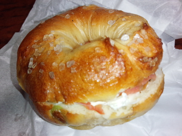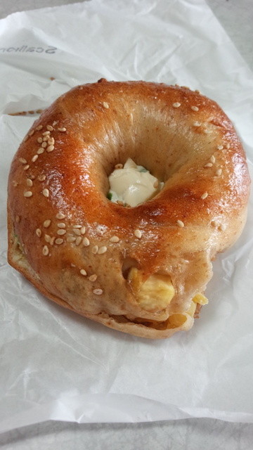 表面にはロックソルトがかかっていて、ベーグルやっぱり美味しい~!!!ホントここのベーグル好きです☆