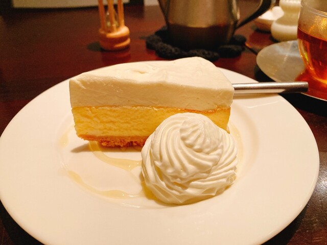 食後にブルーベリーのレアチーズケーキをいただきました。こちらのお店でレアチーズケーキをいただくのは初めてでしたが、