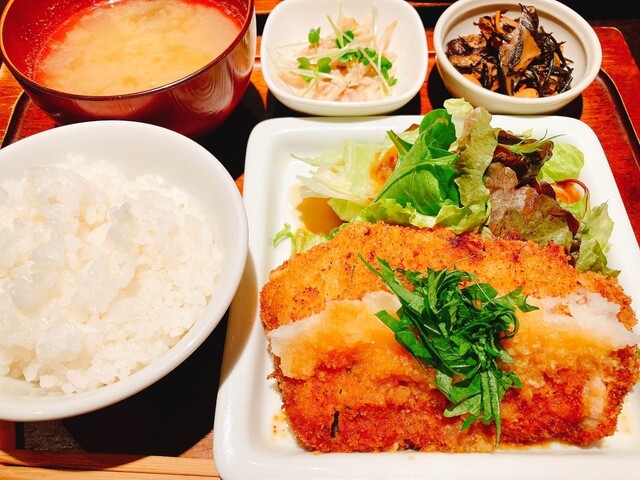 とんかつのおろしがけ ごぼうサラダ、ひじき