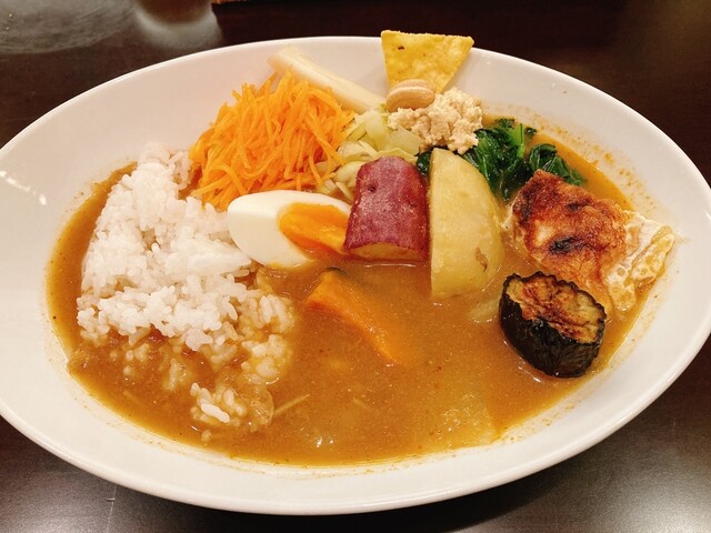 今日のカレーは普段食べないような野菜がたくさん乗っていて彩り良く楽しく食べました。