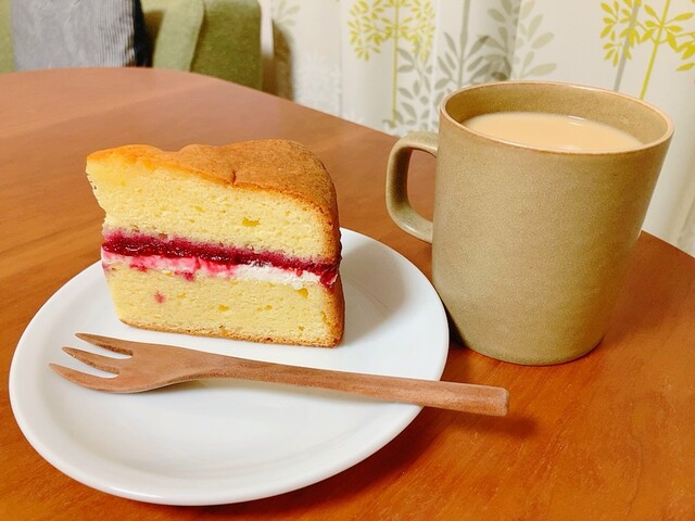 家でさっそくヴィクトリアケーキをいただきました。甘酸っぱくしっとりして美味しいです。