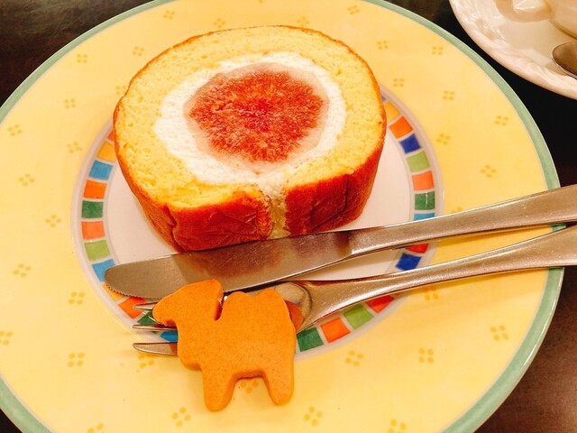 いちじくのロールケーキは、いちじくが柔らかくて甘く、生クリームやしっとりカステラと