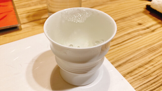 先付 小松菜煮浸し、きゅうり味噌、いわし梅煮、フグの皮の湯引き、汲み上げ湯葉、銀杏と海老