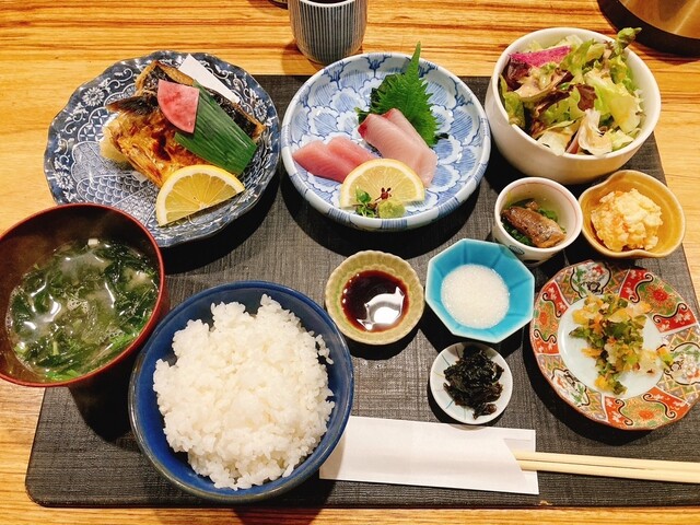 お刺身、揚げたて天ぷら、焼き立て鯖の塩焼きをはじめ、