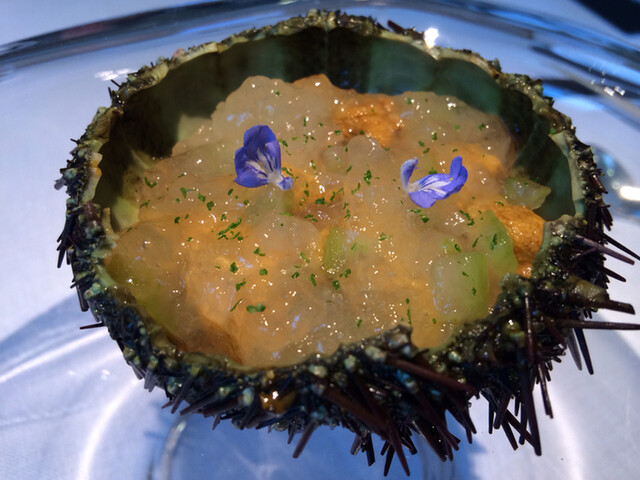 ・柚子釜に河豚の白子と雲丹