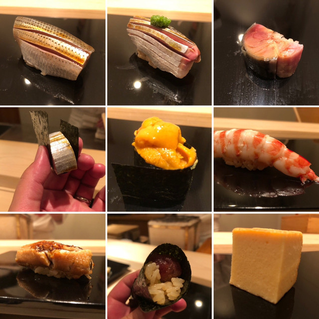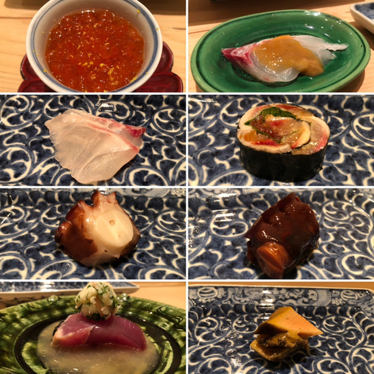 幸いにも3ヶ月ぶりのよしたけさん、2回転目20時半からのお席へ、ワクワクしながら伺いました。この日も乗っけから、いくら、鯛、鰯、蛸、鰹、鮑、金目鯛、白子、ソース、などなど、11種の全てのつまみへ施された知恵と技が素晴らし過ぎ旨過ぎます。吉武親方をはじめとするチームよしたけの連携も完璧です。握りにおいても墨烏賊に始まる全てのネタ、シャリ、どれも旨すぎ美し過ぎもはや芸術的な域だと感心します。数多くの素晴らしい鮨屋@銀座をこれまでも楽しませて頂いて来ましたがこの日もやはりずば抜けた旨さを感じました。お土産の太巻きもかかせません。