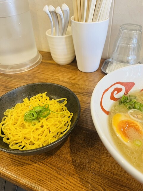 麺、チャーシュー、メンマ、ネギと一緒に食べて