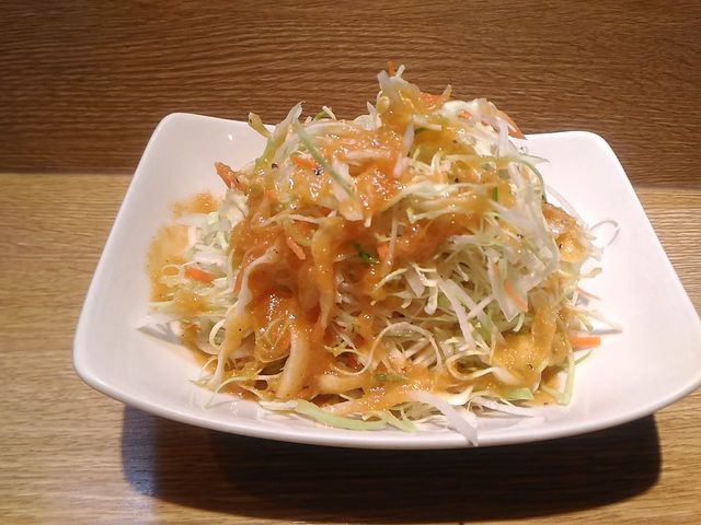 こちらも変わらないサラダ。瑞々しいキャベツにドレッシングが美味い。