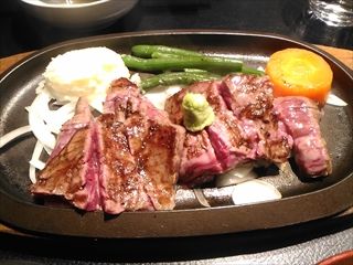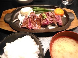 最初にサラダが来て,しばらく待ってハラミステーキ。