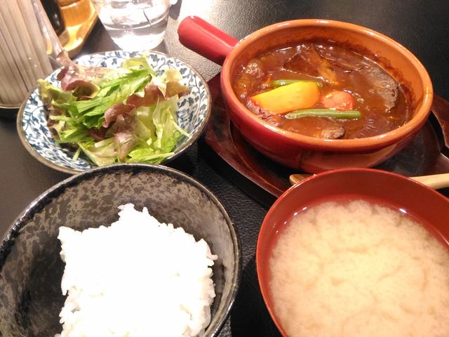 発注は煮込みハンバーグごはん少なめ990円。いつ