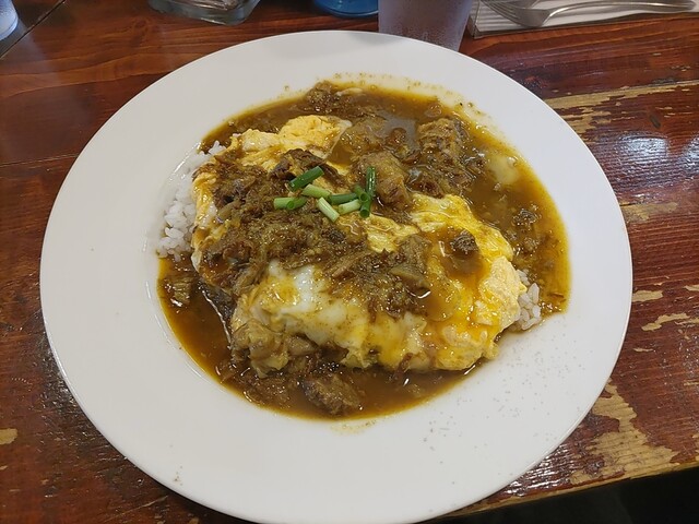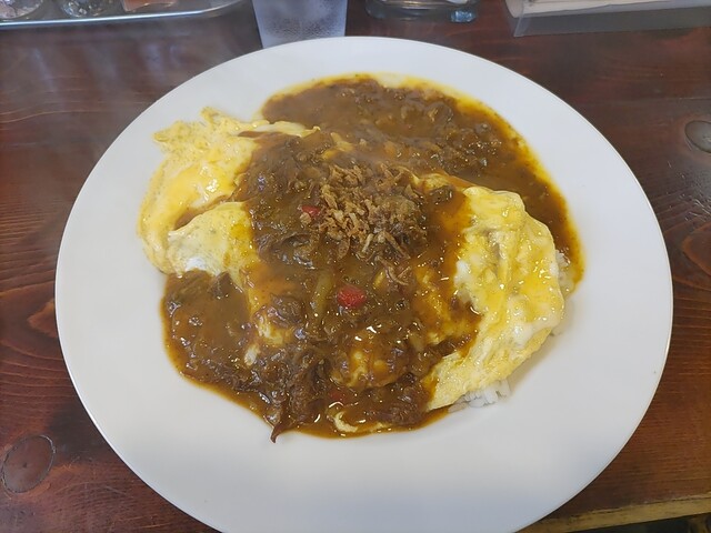 昼時は見ため満席が続いてました。この日は少し早めのお昼になったので行ってみれば空席ありましたので入店です。ワンオペですので,注文は聞かれるまで待ちます。この日は先客注文が重なっていたようで少し待ちました。で,待つ間に何をいただこうか熟考して,この日は牛すじカレーオムごはんをごはん軽めで発注,1,000円。注文後はあっという間に出来上がりです。この日はいつもよりもカレーが辛めでよりスパイシーに感じられ,そうなると崩れ気味のオムレツとかなり合うようでこの日も大変美味しくいただきました。ブログ記事から投稿しました。https://datte2.hatenablog.com/entry/2024/06/24/030000