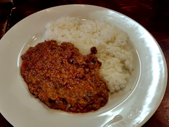 新メニュー?のミートソースカレーを発注,900円。ミートソースと言えば,トマト,玉葱,挽肉を使った煮込み料理ですが,これがカレーになったもの。供されたものは挽肉多めのミートソースがごはんにかかっているもので,いただいてみれば確かにトマト多めのカレーで思ったよりもスパイシーでごはんと一緒にいただくと美味しいです。ミートソースカレーにもオムごはんの設定がありますが,ワタクシはオムレツなしの形がよりソースの美味しさが際立つように思います。準備が大変かと思いますが,このミートソースカレーもレギュラーメニューとなることを願っています。ブログ記事から投稿しました。https://datte2.hatenablog.com/entry/2025/01/14/030000