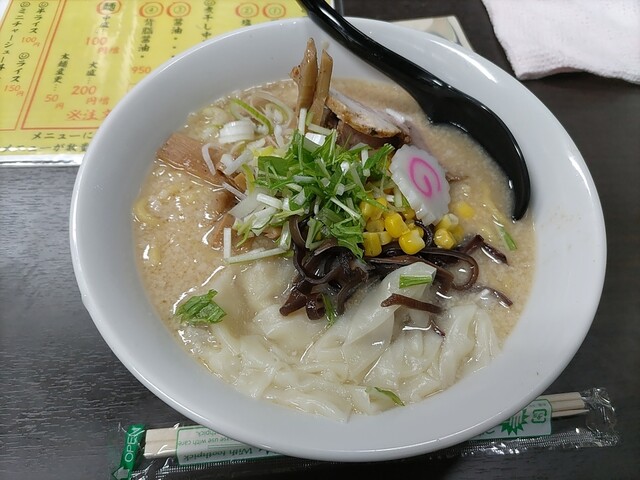 年明けからメニュー変更と聞いておりましたので行ってきました。確かにメニュー一新でした。発注はおそらく新メニューのみそらぁ麺950円,これにワンタントッピング200円で計1,150円。注文後にメニューをよくみたら,みそらぁ麺は太麺200gと書いてありました。また,メニューの番号で注文してくださいとのことでした。みそらぁ麺のTP具材は,スープと煮たもやし,チャーシュー,メンマ,きくらげ,コーン,なるとで追加TPのワンタンは4つ入ってました。スープは脂多めな感じですが,味噌味円やかでなかなか美味しいです。太麺のスープの絡み,持ち上げもよく美味しいので麺量200gを感じず完食,完飲しました。