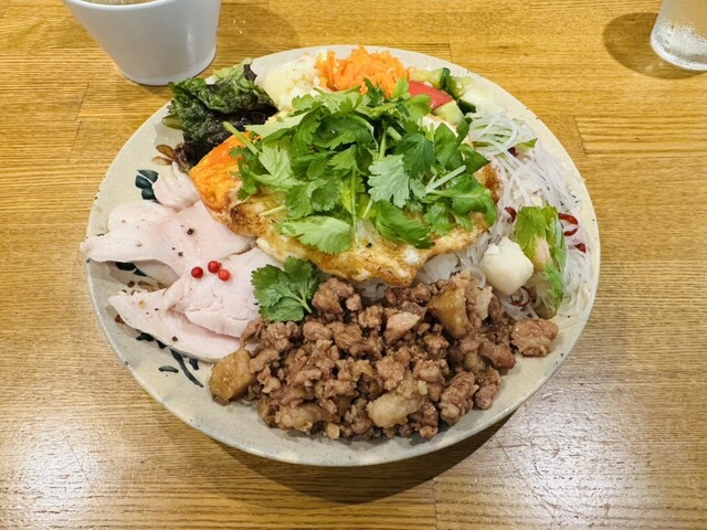 翌日再訪。パクチーで目玉焼きが隠れてる。