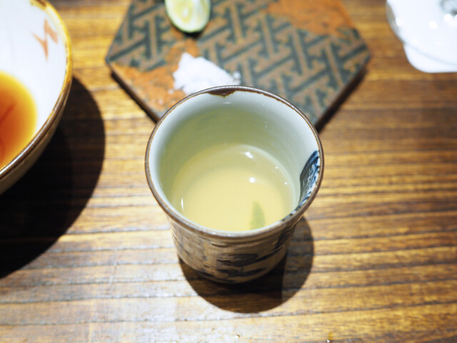 長めの火入れになっている。塩、天つゆ両方でいただく。