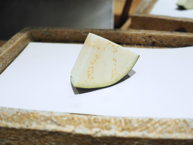 焼津の太刀魚。塩と酢橘でいただくようにご案内がある。とろけるような素晴らしさ。これをいただいた瞬間、こころのこわばりが一気に溶けてほどける。