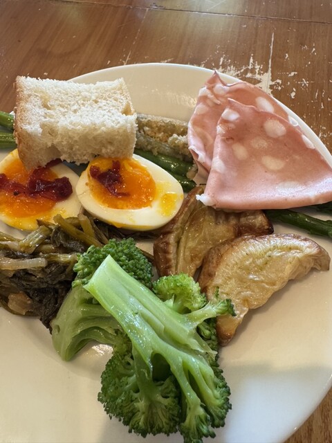 って奥様と話したら、またここになってしまった。オープン15分前に行ったら、カウンターの最後の二席だった。予約しないと危ないのね。相変わらず野菜の美味しい食べさせかたは比類なきレベル。サラダバーでフルコースと言ってもいいのではないか。三皿取ってやりすぎかなと思ってたら、奥様も三皿で食べ過ぎって呻いてた。メインのパスタはアスパラガスとパルミジャーノのスパゲッティ。ほとんど味付けせずにアルパラの旨みだけで食べさせる夏のメニューだった。美味い!満足!満腹!2,500円で安い!って言わせるんだから最強ランチだと思います。ここ数年では福島最強!って言ったら、ここは伊達だしって笑われました。