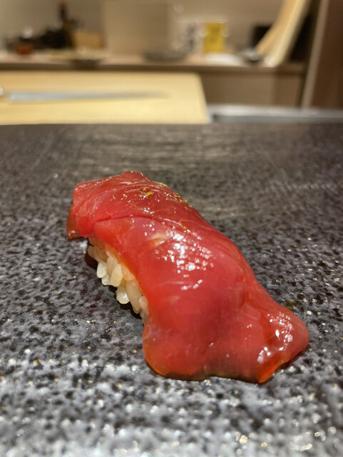 角煮といってもさわやかな優しい味付けです。鮪とのことですがかなり脂がのっていて、大トロみたいな旨味はないものの溶けるようなスッキリした脂のおいしさがありました。