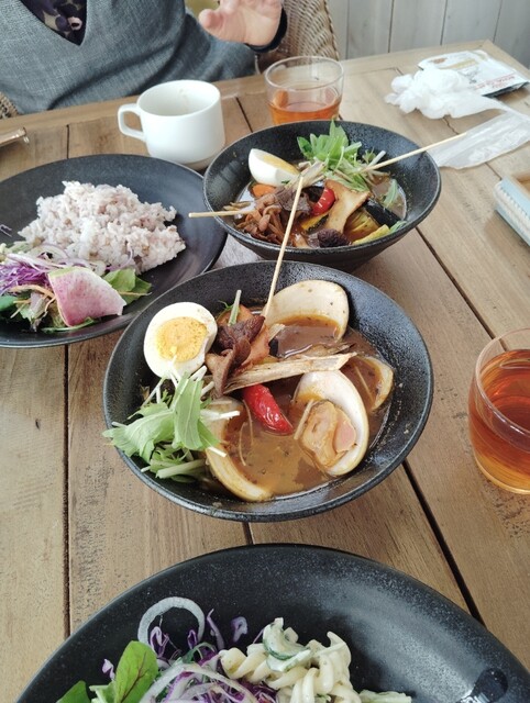 今日のお昼は、市川大野駅から徒歩約20分の「海風堂」さんに行きました。カレーは3種類から選べます。フリードリンクが付いて税込み1,650円。ケーキはプラス350円なので、計2,000円です。カレーはさっぱりした味で、野菜がメインです。ワンちゃんも入れます。美味しかったです。ごちそうさまでした
