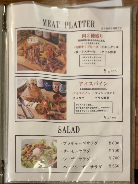 アイスバイン→ハラミ500g→リブロース400g→追いハラミ500g→ハンバーグ300g。