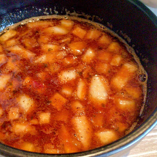 もちろん最後は残りスープへ投入し、トマトチーズリゾットもどきで全部さらいます。