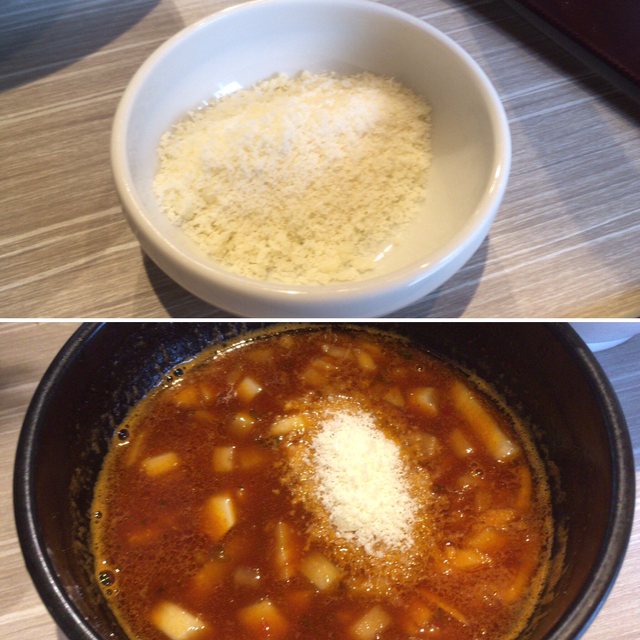 次回トマトつけ麺のときは、パルミジャーノトッピングも追加試したい。