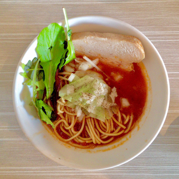一口目すすったときの香りがめっちゃ良くなった。もうラーメンじゃない、イタリアン的なトマト料理w
