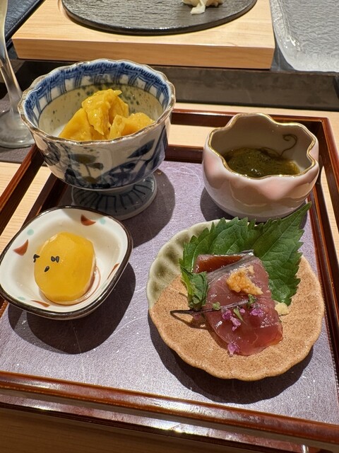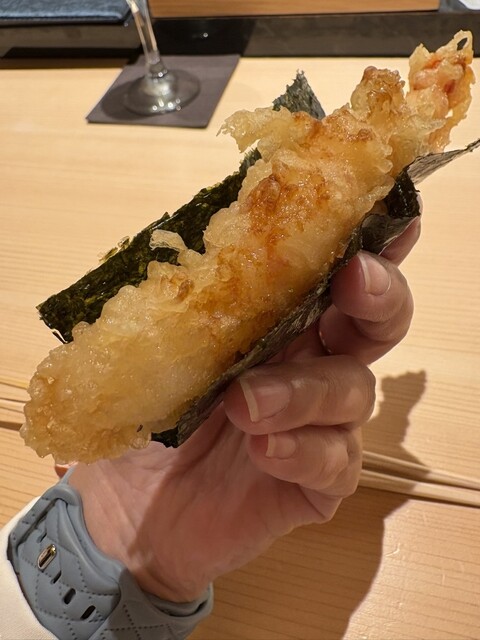 遅くなった母の誕生日祝いでこちらへ。平日の昼間ということもあるのか、カウンターはしばらく私たちで貸切でした。新鮮なネタのお鮨に、熱々の天ぷらもいただけて大満足!海老ドッグは尻尾も処理してあるので丸ごと食べられました。握ってくださる板前さんもぶっきらぼうなのかな?と思いきや、ボソボソっと話してくださる内容がとても面白く、楽しい時間となりました。ただ途中から隣に座った若い外国人女性のグループの香水が少しキツかったのが残念です…(お店には全く非はないですが…)