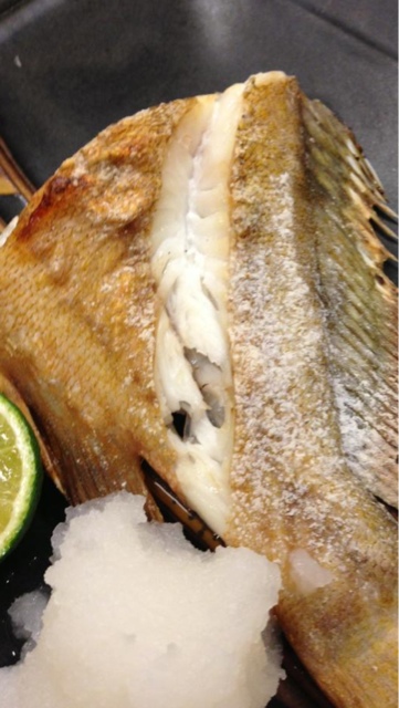 希望にこたえてくれて、煮付けようの魚を焼いてもらいました。