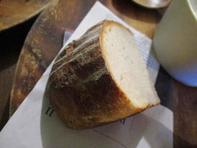 見た目ハードに見えますが中はもちっと柔らかで卵ペーストをのせて。