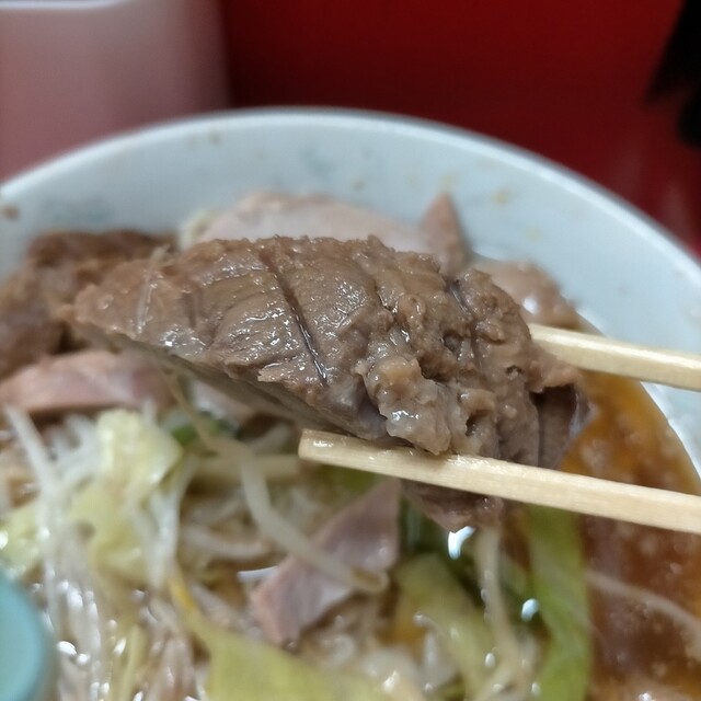 久しぶりに野菜を増したので旧スタイルに戻ってシャキ野菜と麺を一緒に頬張り口の中のシャキむにゅハーモニーを楽しんでいく。