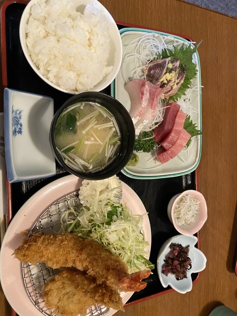 ▼お刺身3点と海老フライ1アジフライ1セット 2,250円