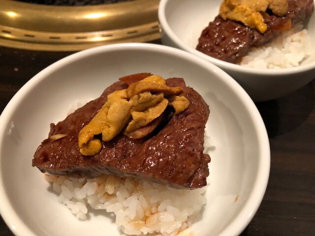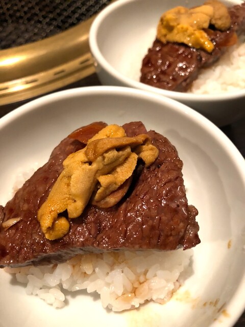 白いご飯に大胆に乗せ、向こうから持ってきたウニをドンと載せる。一口食べてもうこれは....ハハー参りました。うにと肉の組み合わせ色んな店でやっててもったいね。と思っていたけどそんなのもうなんでもいいしどうでもいいけどKOノックアウトした。やばいやつやん。神の食べ物だった(笑)