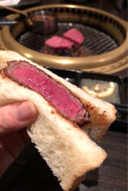 なんて贅沢サンド...これも歯茎で嚙み切れる柔らかさ。パンの方が柔らかいはずなのに肉の方が柔らかいです。