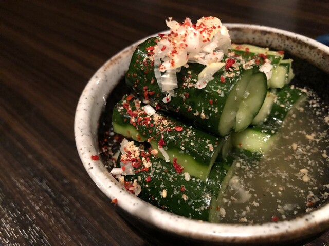 そして良く浸かっているキムチ、カクテキがまた美味しい。この時点で白米がめちゃ欲しくなるのですが、コースの最後の方には満腹になるのを知っているので注文は控えてください。