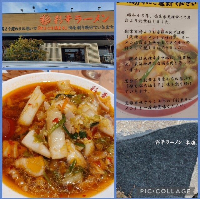 彩華ラーメンを食べに天理へ。奈良だけでなく大阪にもありますが、せっかくなので天理本店へ。11時半に到着するも既に約100人待ち=3但、席も100席以上あるようで回転もはやく、結局30分位で席につけました。駐車場も広いです。