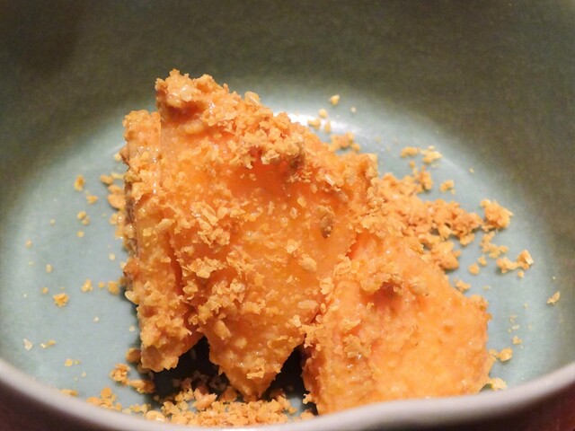 煎りたて擂りたての胡麻で柿を和えたもの。