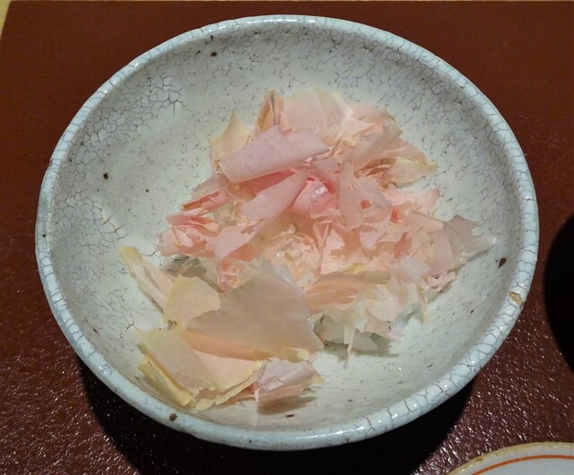 小さな器で出されたのは、先の削り節と昆布でとった一番出汁。