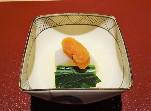 先付:小蕪(富士宮産)、小松菜、自家製からすみ