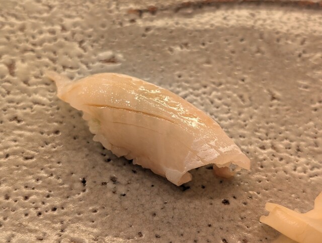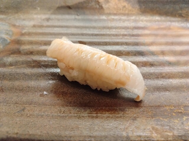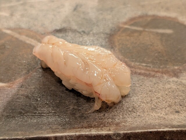 にぎりは鮪の赤身、縞鯵、甘海老、平目、蟹、帆立、鮪のカマトロ、桜えび、白魚、玉子といった内容です。本来ならランチで出されるネタではないと思いますがサービスでいろいろ奮発してくれたようです。特に桜えびは年に2回程収穫のシーズンがあって、駿河湾で晩秋の時期に採れる初物だそうで、甘みがあって美味しかったです。それと白魚は稚内産と言っていたような気がしますが、これも仕入れたばかりでとても新鮮で身がパリッとしていて食感が良く旨味があります。あまり白魚って好きではないのですが、今回のものは良かったですね。