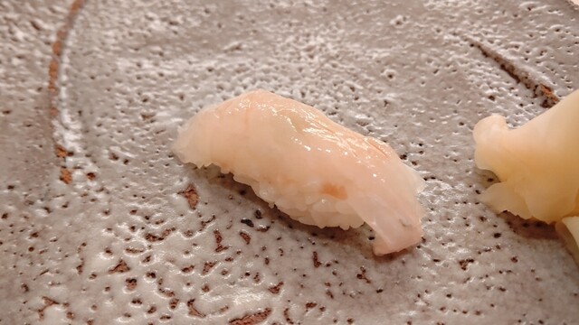 にぎりも板前さんにお任せで。平目、新いか(身、下足)、まぐろ背トロ、石垣貝、金目鯛、まぐろの漬け、新子、牡丹海老、雲丹、いくら、まぐろの炙り、穴子(煮切り醤油、ツメ)。「新子」は仕入れられればということでしたが、まさか一緒に「新いか」まで味わうことができるとは運が良かった。ご一緒していただいレビュアーさんに「新子」無事に味わっていただくことができて、ホッとしました。しかも「新いか」まで食べていただけたのはラッキーでした。