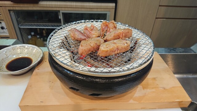 河豚の白子を炭火で焼いています
