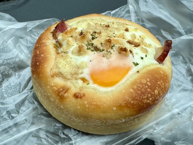 ハムエッグはこちらもハード系ではないけれど生地がしっかりしてるから卵にまけずパンを食べてる感がすごい。オニオンブレッドに比べてソースの味がマヨネーズソースだったから、食べる順番少し間違ったかな、オニオンブレッドのソースの味の方が濃厚だったからそこは次気をつけよう。