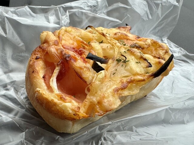 オニオンブレッドはハード系ではないけれど、上に乗った玉葱と、ハム、チーズとソースが美味しくあっという間になくなりました。