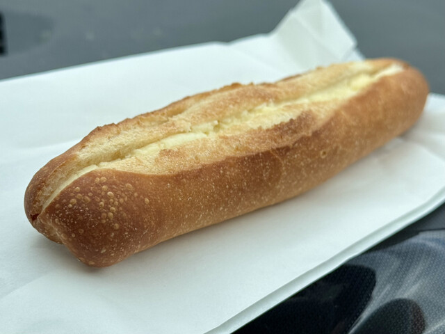 早速車でバタールを食しました。外はカリッと。中身が結構もちもちしてる感触。うん、美味しい。
