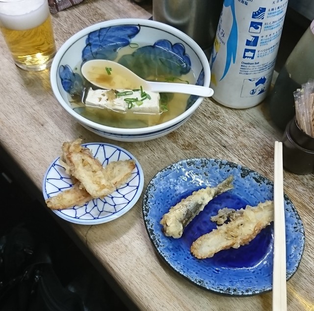 店内に入ると、お酒を注文する前にサービスの1品が登場、今日は「鰯のフライ」を出して頂きました。いつもながら素晴らしいサービスですね。